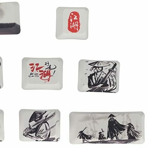 • Elevate your keyboard with 10-key DIY PBT keycaps featuring bold ink and wash martial arts patterns.