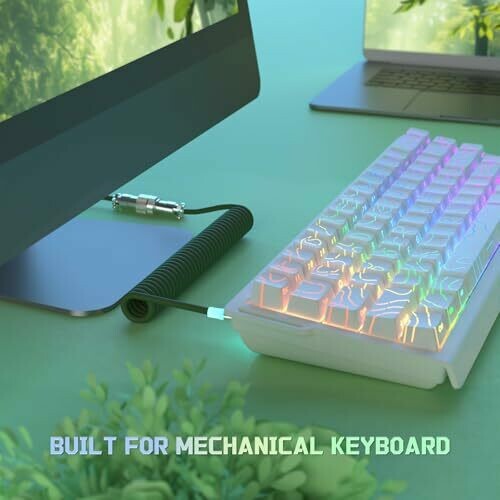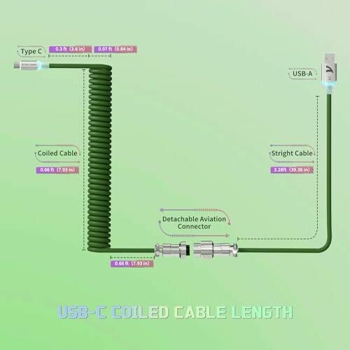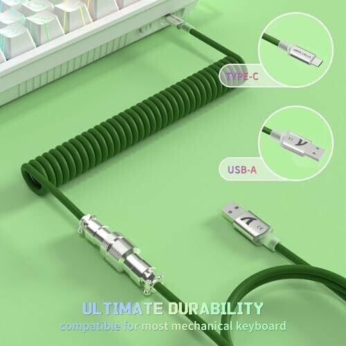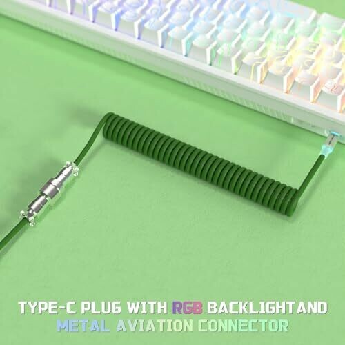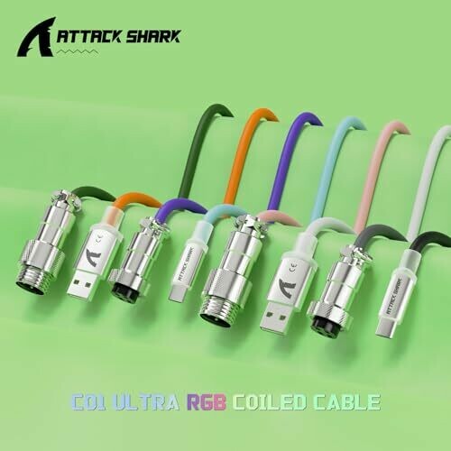 • Attack Shark C01 Ultra Custom Coiled Usb C to A Cable for Mechanical Keyboard,rgb Light Plug,double-sleeved Gaming Cable with Detachable Metal Aviator,for Popular Gaming Consoles Keyboard Mouse-green