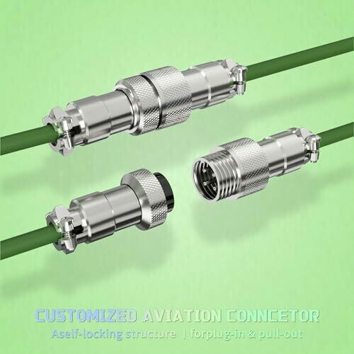 Detachable gold-plated metal aviator connector for modular cable management and device swapping.