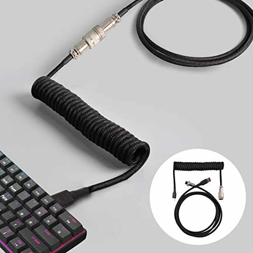 B Blesiya Usb Cable Cable Retractable with Metal Connector Coiling Spring Cable Wire Universal Detachable 2 in Mechanical Keyboard, Black