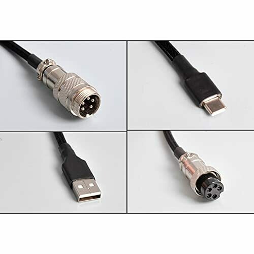Retractable USB cable with a metal connector and coiled design provides tidy desk setup. Durable nylon construction in black, detachable connector system for quick swaps, and universal compatibility with Type-C devices and mechanical keyboards.