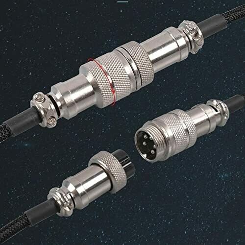 Gunmjo Starlight Coiled Usb C Cable for Gaming Keyboard, Double-sleeved Mechanical Keyboard Cable with Detachable Metal Aviator, 1.5m Usb-c to Usb-a, Black Color with Gold Aviator Connector
