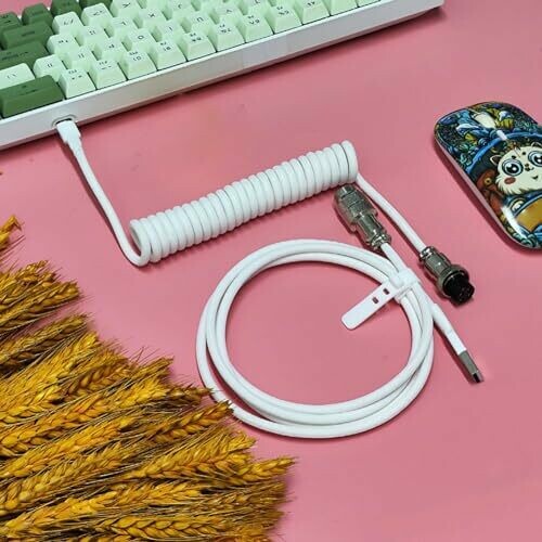 Cryfokt Professional Gaming Keyboard Cable Coiled Sturdy Connector for Mechanical Keyboard,pe Material,lightweight and Portable (white)