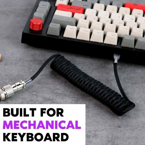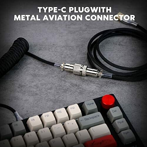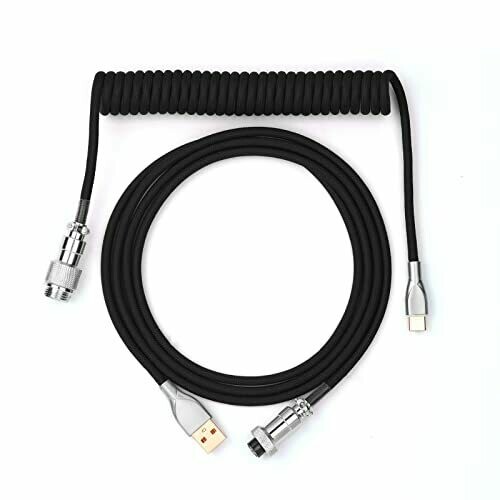 • Epomaker Mix 1.8m Coiled Type-C to USB A TPU Mechanical Keyboard Space Cable with Detachable Aviator Connector for Gaming Keyboard and Cellphone (Black)