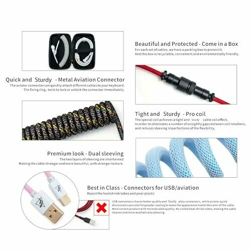 B Blesiya Usb Cable Cable Retractable with Metal Connector Coiling Spring Cable Wire Universal Detachable 2 in Mechanical Keyboard, Black