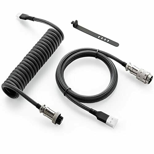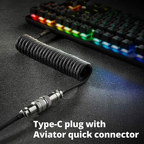 - Premium coiled USB-C to USB-A keyboard cable designed for gaming setups.
