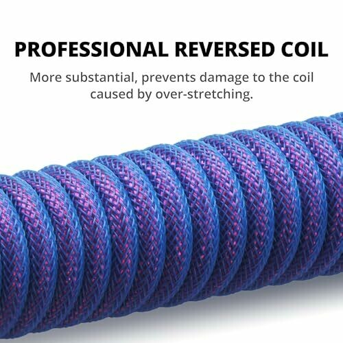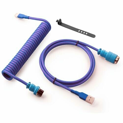- Premium, Nebula-colored coiled USB-C to USB-A cable designed for gaming keyboards with a bold, space-grade aesthetic.