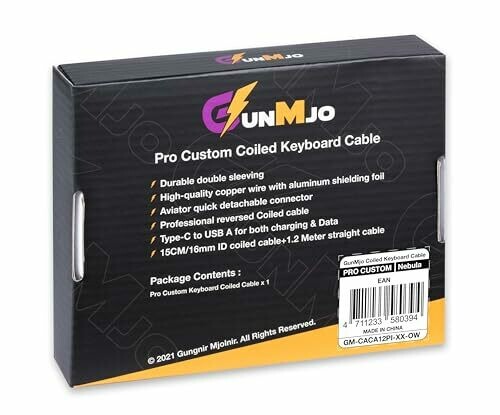 Gunmjo Pro Custom Coiled Usb C Cable for Gaming Keyboard, Double-sleeved Mechanical Keyboard Cable with Detachable Metal Aviator, 1.5m Usb-c to Usb-a, Nebula Color