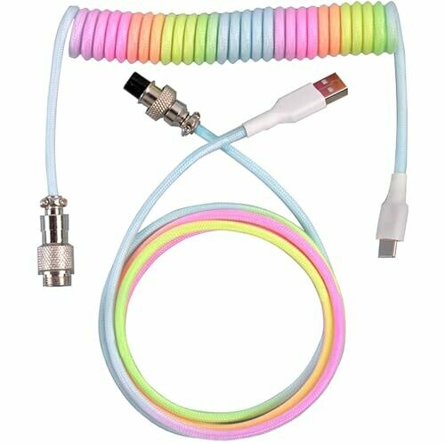 Tunghey Coiled Keyboard Cable, Nylon Braided Usb C to Usb A Tpu Cable for Mechanical Gaming Keyboard, with Detachable Metal Aviator for Custom Keyboard 3m (colorful)