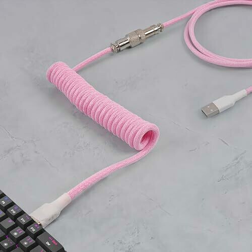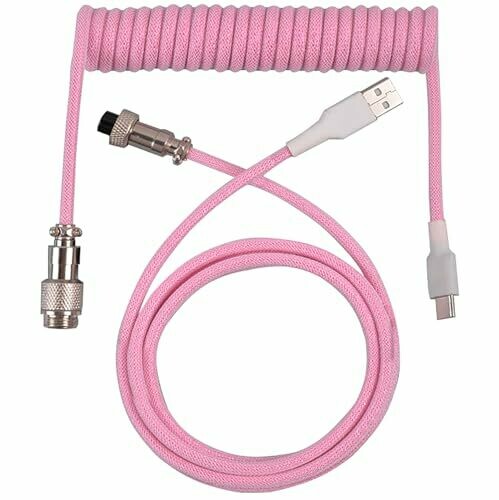 • Tunghey Coiled Keyboard Cable, Nylon Braided Usb C to Usb A Tpu Cable for Mechanical Gaming Keyboard, with Detachable Metal Aviator for Custom Keyboard 3m (pink)