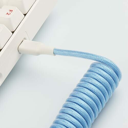 Tunghey Coiled Keyboard Cable, Nylon Braided Usb C to Usb A Tpu Cable for Mechanical Gaming Keyboard, with Detachable Metal Aviator for Custom Keyboard 3m (blue)