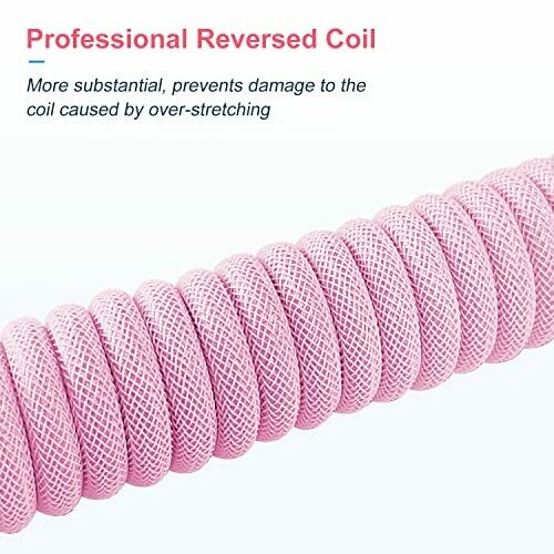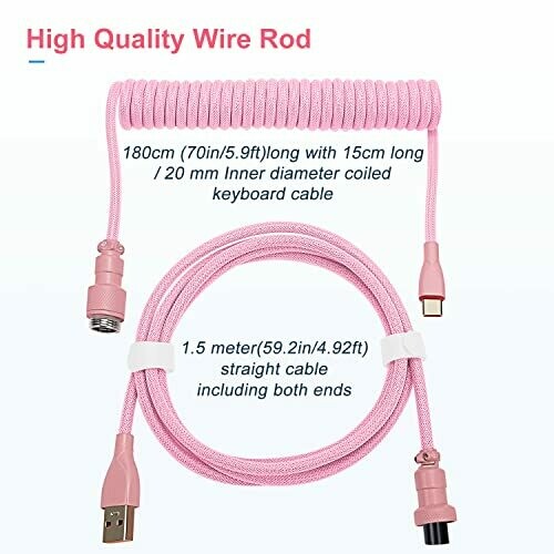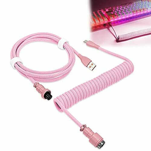 • Ucinnovate Coiled Keyboard Cable, Pro Custom Coiled Usb C Cable for Gaming Keyboard, Double-sleeved Mechanical Keyboard Cable with Detachable Metal Aviator, 1.8m Usb-c to Usb-a (pink)