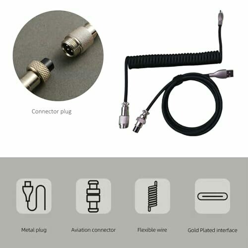 Xolixorium coiled Type-C to USB-A cable offers reliable connectivity for gaming keyboards and smartphones with a tidy, stylish setup. Features a detachable aviator connector, durable coil, and compatibility with Type-C devices and USB-A hosts for steady power and data transfer.