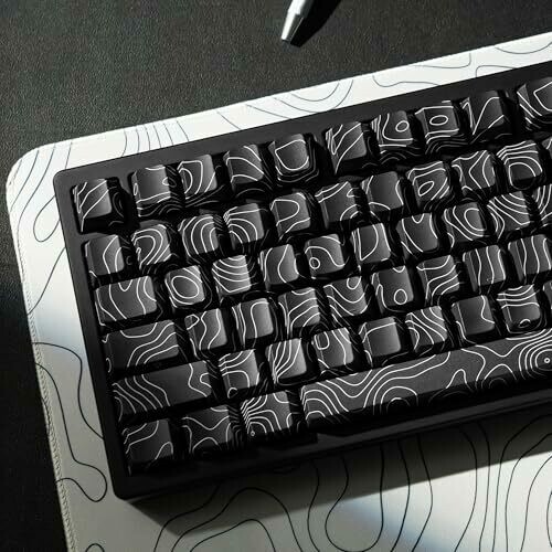 • dagaladoo Black Topographic PBT keycaps in Cherry Profile for a bold, modern keyboard aesthetic