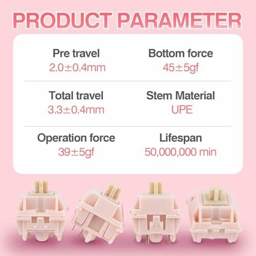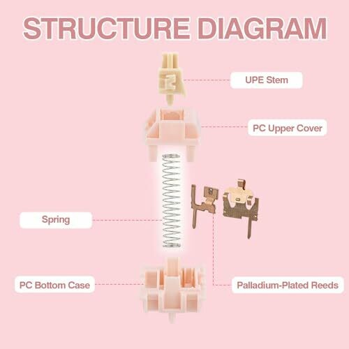 Epomaker Nude Rosa 39gf Silent Gaming Keyboard Switches, 5-pin Pre-lubed Linear Switch, 35 Pcs, 21mm Spring, with Pc Case, Upe Stem, Compatible with Mx Keycaps for Mechanical Keyboard (nude Rosa)