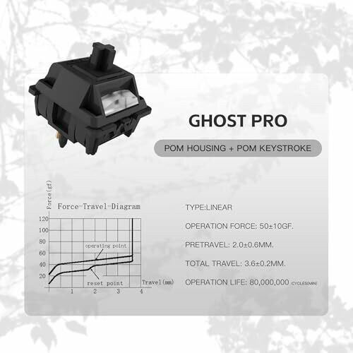 Premium Gateron Ghost switches designed for MX Mechanical keyboards with a smooth, linear feel. Factory pre-lubricated for plug-and-play use. All-POM construction offers durable, low-friction operation and quiet actuation in a full-keyboard setup. Dual-stage springs provide consistent keystrokes.