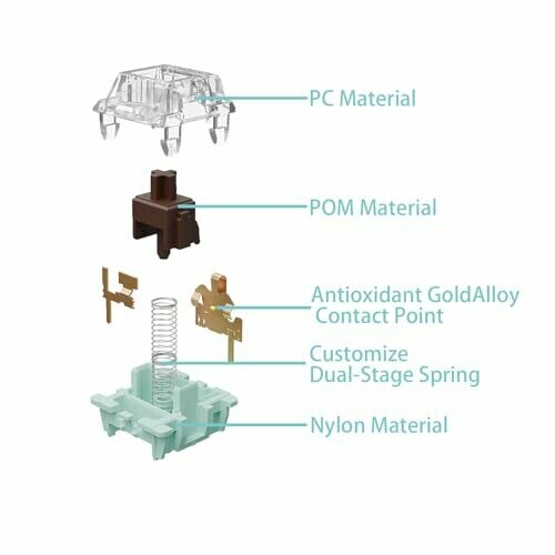 Gateron Quinn Keyboard Switches,5-pin 59gf Pre-lubed Double Stage Gold-plated Spring Tactile Switch for Mx Mechanical Keyboard(90pcs)