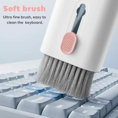 A 7-in-1 electronics cleaning kit designed for keyboards, screens, laptops, and more. It features soft bristles and a flocked sponge to remove dust without scratches, plus a keycap puller, screen wiper, brush set, and cleaning fluid for versatile, portable maintenance.