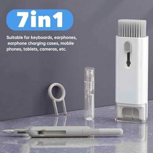 • All-in-one cleaning kit designed for keyboards, screens, and electronics with seven integrated tools for versatile care.