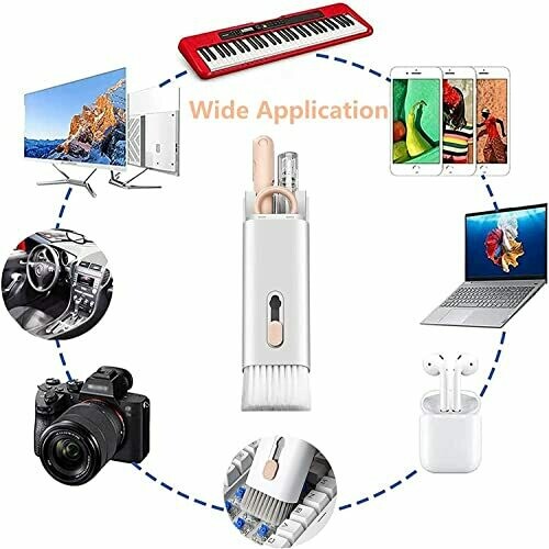• 7 in 1 Keyboard & Earphone Cleaner designed to upgrade your cleaning routine with portable, multi-function versatility.