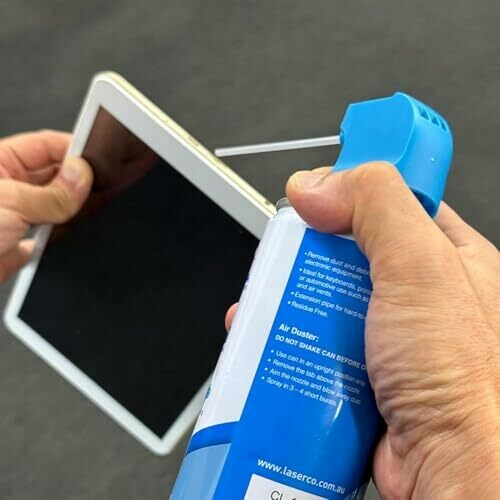 Powerful 400 ml compressed air duster with an extension tube enables reaching tight spots. Safe for keyboards, monitors, TVs, printers, laptops and cameras. Portable and lightweight, it removes dust quickly without wiping. Australian owned with a 12-month warranty.