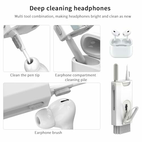 • Dedicated accessories for headphones and earbuds, including swabs, a brush, and a pen tip to remove dust and grime.