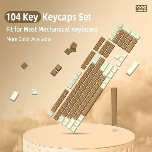 • Elevate your typing experience with a vibrant, coffee-themed 104-key keycap set designed for a wide range of layouts.