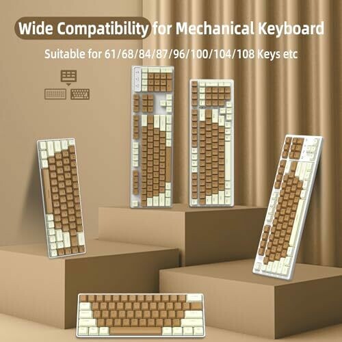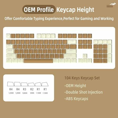 Coffee-themed 104-key keycap set in double-shot ABS for a wide range of layouts. OEM profile offers comfortable typing height. Compatible with ANSI US layouts and cross-type switches, suitable for 60 percent to full-size keyboards, including 61/68/87/98/100/104-key builds and DIY projects.