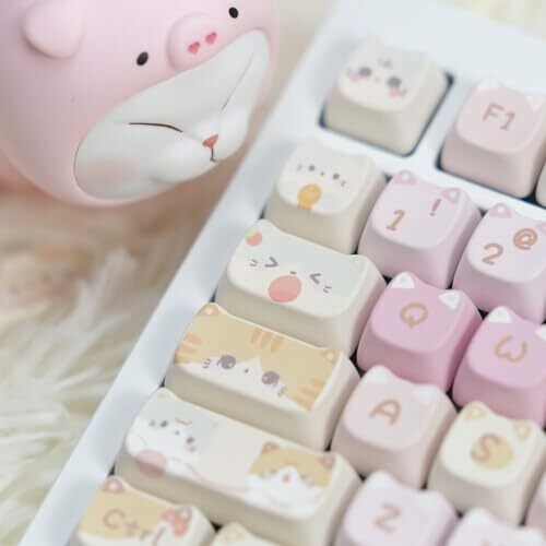 • Kiiboom Cute Cat Keycaps Set, Mao Profile, PBT/PC Keycap for MX Switches Mechanical Keyboard