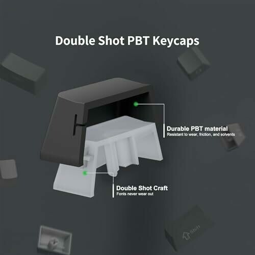 Keycaps are made from textured, high-grade PBT material with wear, friction, and solvent resistance.