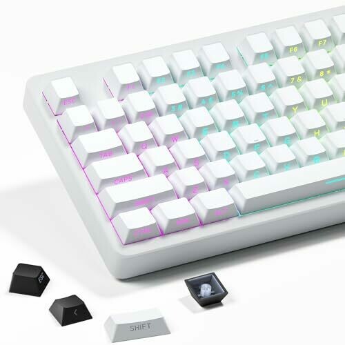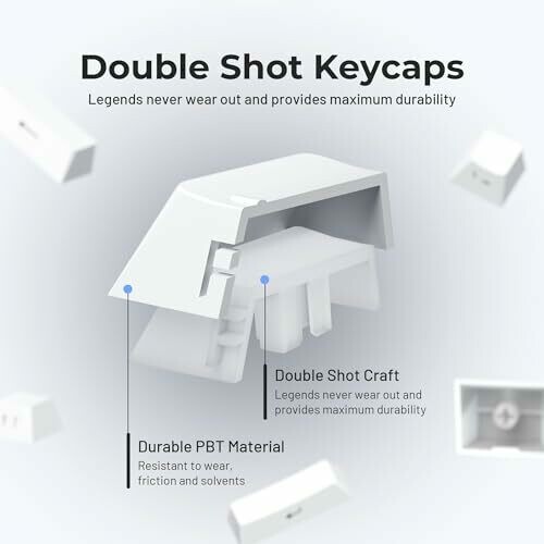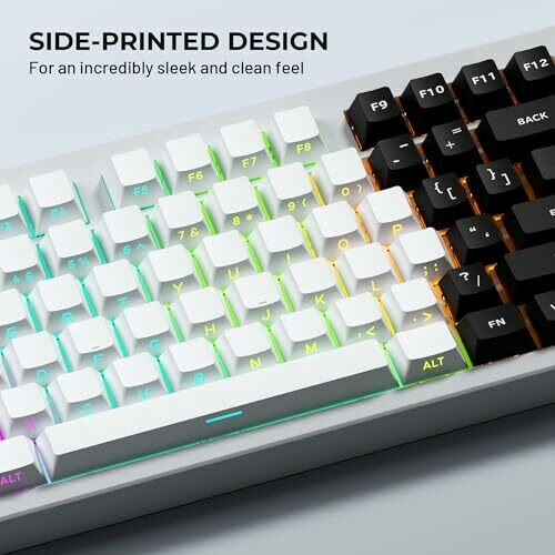 • High-clarity white PBT keycaps with side print design for a clean, minimalist look.
