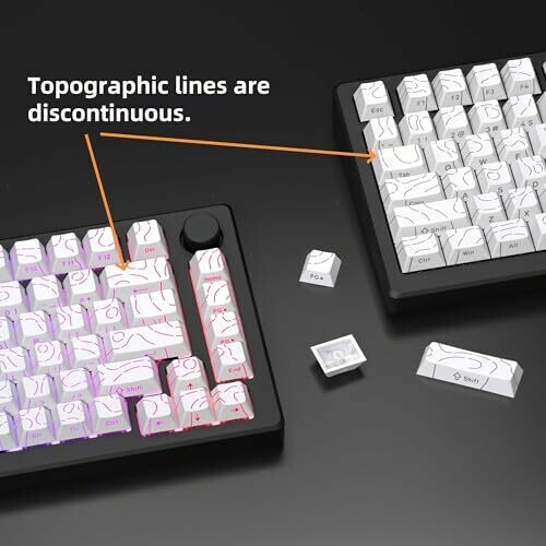 • White Topographic Keycaps Line Backlit Keycaps Shine Through Keyboard Keys