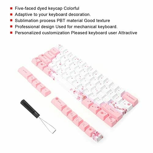 This 73-key PBT keycap set features five-faced sublimation design for universal mechanical keyboards. Rich, durable color resists fading and includes a puller for quick setup. Cherry Blossom and Whale motifs offer a stylish, personalized keyboard aesthetic with robust wear resistance.