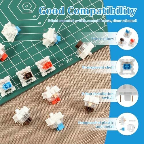 3-pin plate-mounted switches compatible with most mechanical keyboards; provides pronounced tactile feedback.