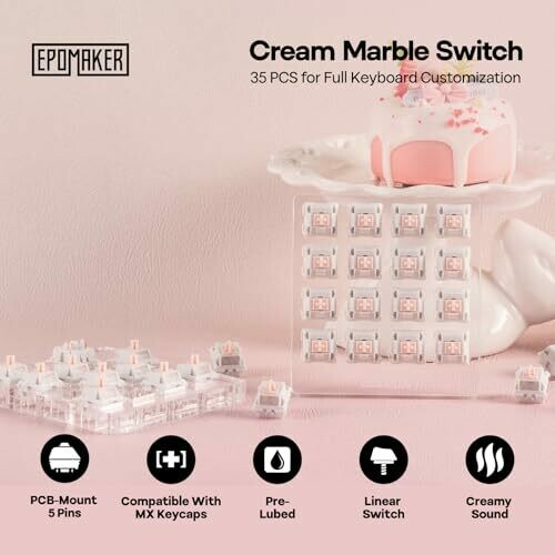 • Epomaker Cream Marble 47gf Gaming Keyboard Switches, 35 Pcs Linear Switch, 5-pin Pre-lubed Switch, Creamy Switches, Compatible with Mx Keycaps for Mechanical Keyboard