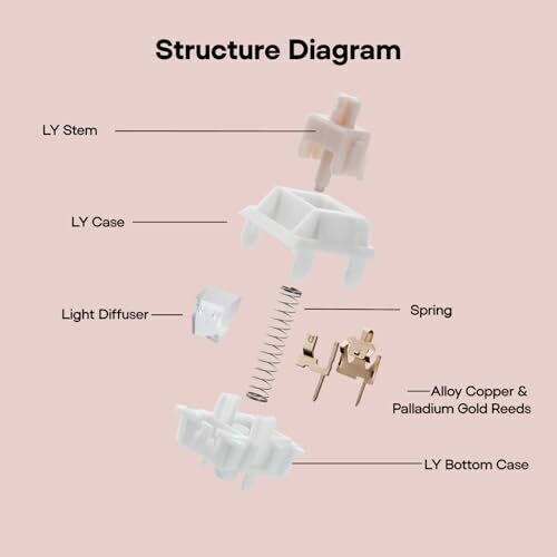 Epomaker Nude Rosa 39gf Silent Gaming Keyboard Switches, 5-pin Pre-lubed Linear Switch, 35 Pcs, 21mm Spring, with Pc Case, Upe Stem, Compatible with Mx Keycaps for Mechanical Keyboard (nude Rosa)