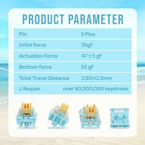 • Transform your keyboard into a smoother, more responsive typing machine with Sea Salt linear switches designed for a silky glide and effortless keystrokes.