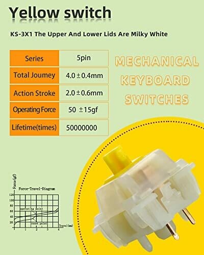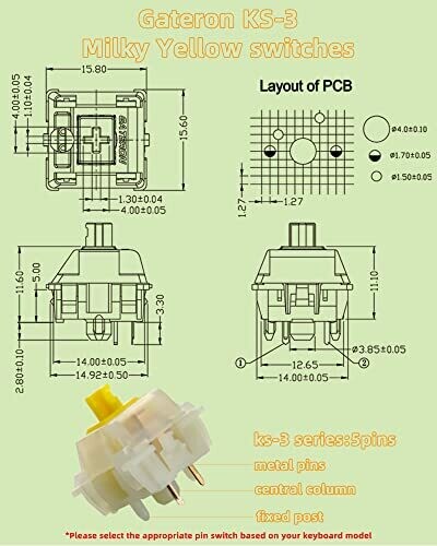 Gateron Milky Yellow Switches - Silent Linear Switches for MX Mechanical Keyboard - 5 Pin, 70 Pcs