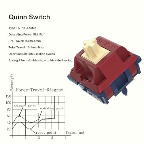 • Gateron Quinn Keyboard Switches,5-pin 59gf Pre-lubed Double Stage Gold-plated Spring Tactile Switch for Mx Mechanical Keyboard(90pcs)