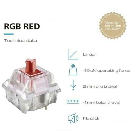 • Experience a crisp, satisfying click with red switches designed for rapid keypresses and responsive gaming performance.