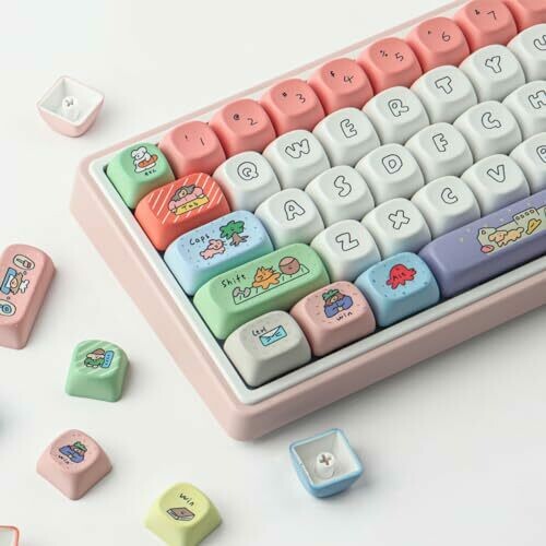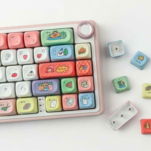 • 126-key MOA profile PBT keycap set with cute, funny smiley designs for a playful keyboard look