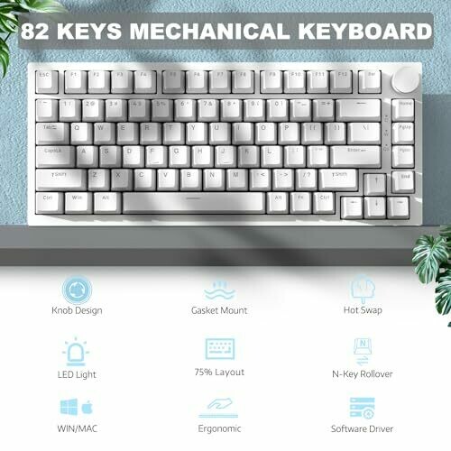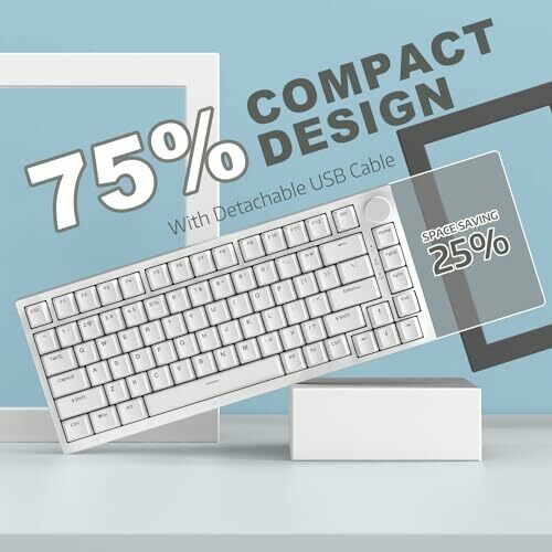 - Compact 75% layout that saves desk space without sacrificing function, making it ideal for travel and small workspaces.