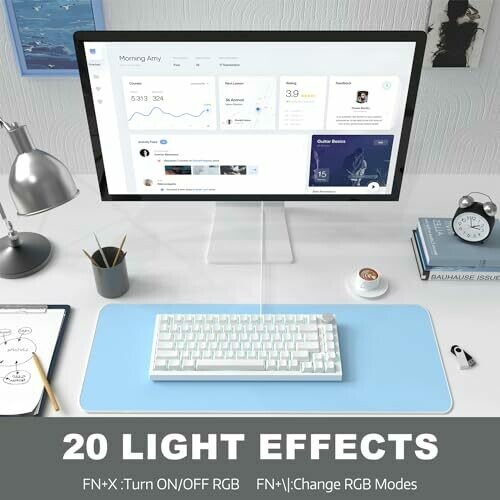 - Translucent PBT keycaps with blue LED backlight create a striking, durable typing experience in any lighting.