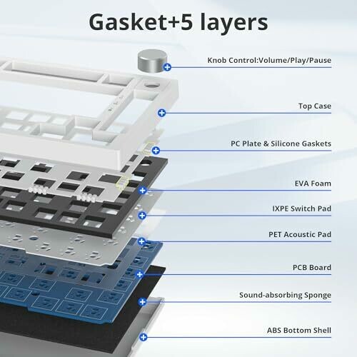 GTSP 75% Custom Barebones Keyboard Kit Gasket Mouted,blank Diy Silent Tkl Mechanical Gaming Keyboard Pcb Hot Swappable 3pin/5pin Switch with South-facing Rgb for Win/mac (m87 Kit-white)