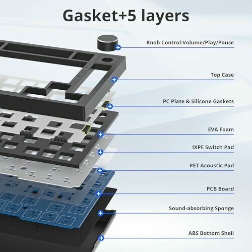 Build your own 75% keyboard with a blank canvas for customization. Gasket-mounted with hot-swappable switches, supports 3Pin and 5Pin, detachable cable, and Windows or Mac compatibility. Compact design fits desks easily and invites personal style through DIY assembly.