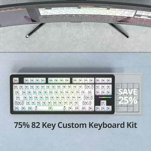 Elevate your setup with a 75% TKL gasket-mounted keyboard for refined, quiet typing and improved acoustics. Hot-swappable with 3-pin and 5-pin switches, south-facing RGB lighting, blank DIY ready, compatible with Win and Mac, ANSI 87-key layout, includes USB-C cable and tools.