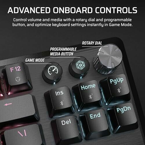 • Per-key RGB lighting and vibrant aesthetics for immersive, customizable gaming visuals.