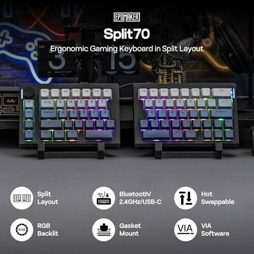 • Epomaker Split70 Wireless Ergonomic Keyboard with Qmk/via and Knob