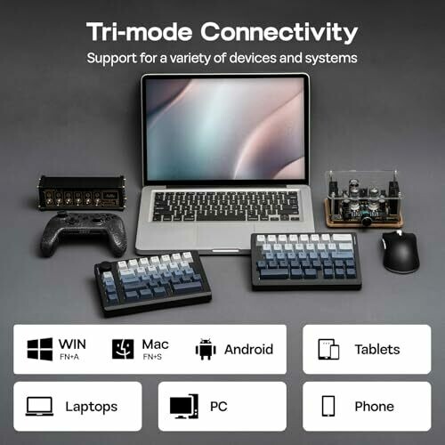• Tri-mode wireless connectivity (Bluetooth 5.0, 2.4GHz, USB-C) supports multi-device pairing across PC, Mac, and Android with easy re-pairing.