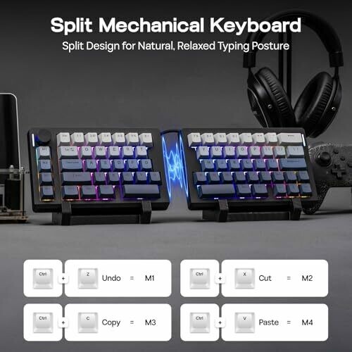 • Experience an ergonomic split 70% layout that can be used as two halves or linked together for flexible typing angles and long-lasting comfort.